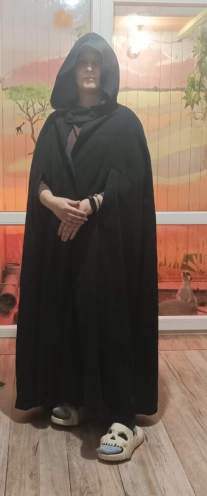 Großartig. Der Schnitt und der Stoff sind genau wie auf den Fotos. Und die Hauptkapuze ist tief. denken Sie daran, die Größe Leitfaden beziehen (ich nahm es zwei Größen über bewusst breiter und länger haben) Perfekt für mein Kostüm